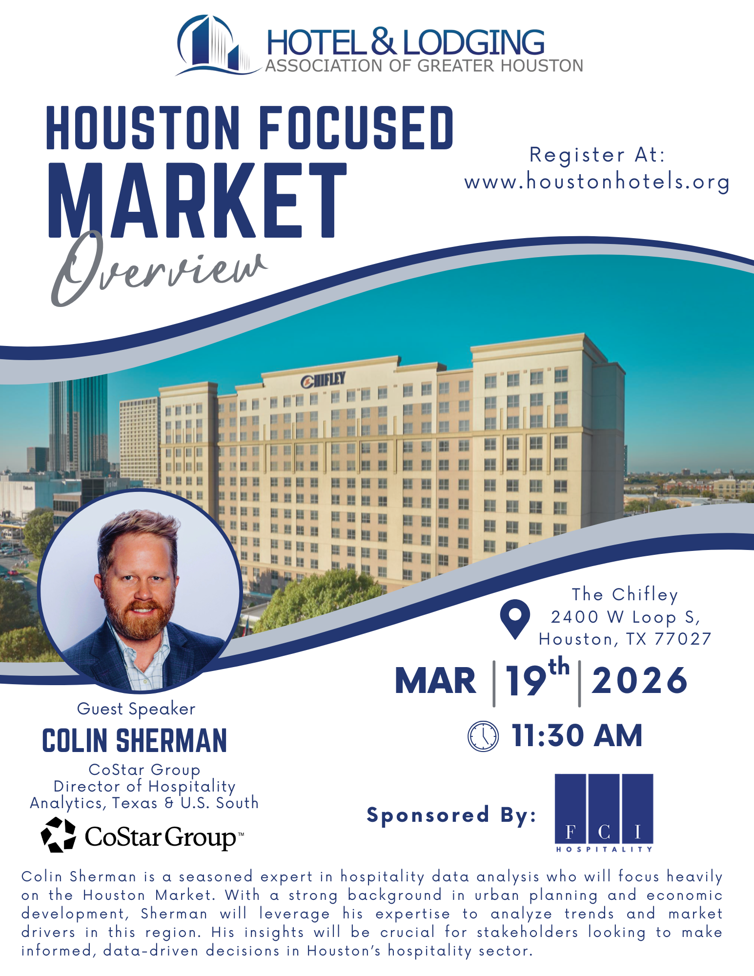 Mar 19 Houston Focused Market Overview 11:30 am - 1:00 pm The Chifley 2400 W Loop South, Houston Event Details Get Directions